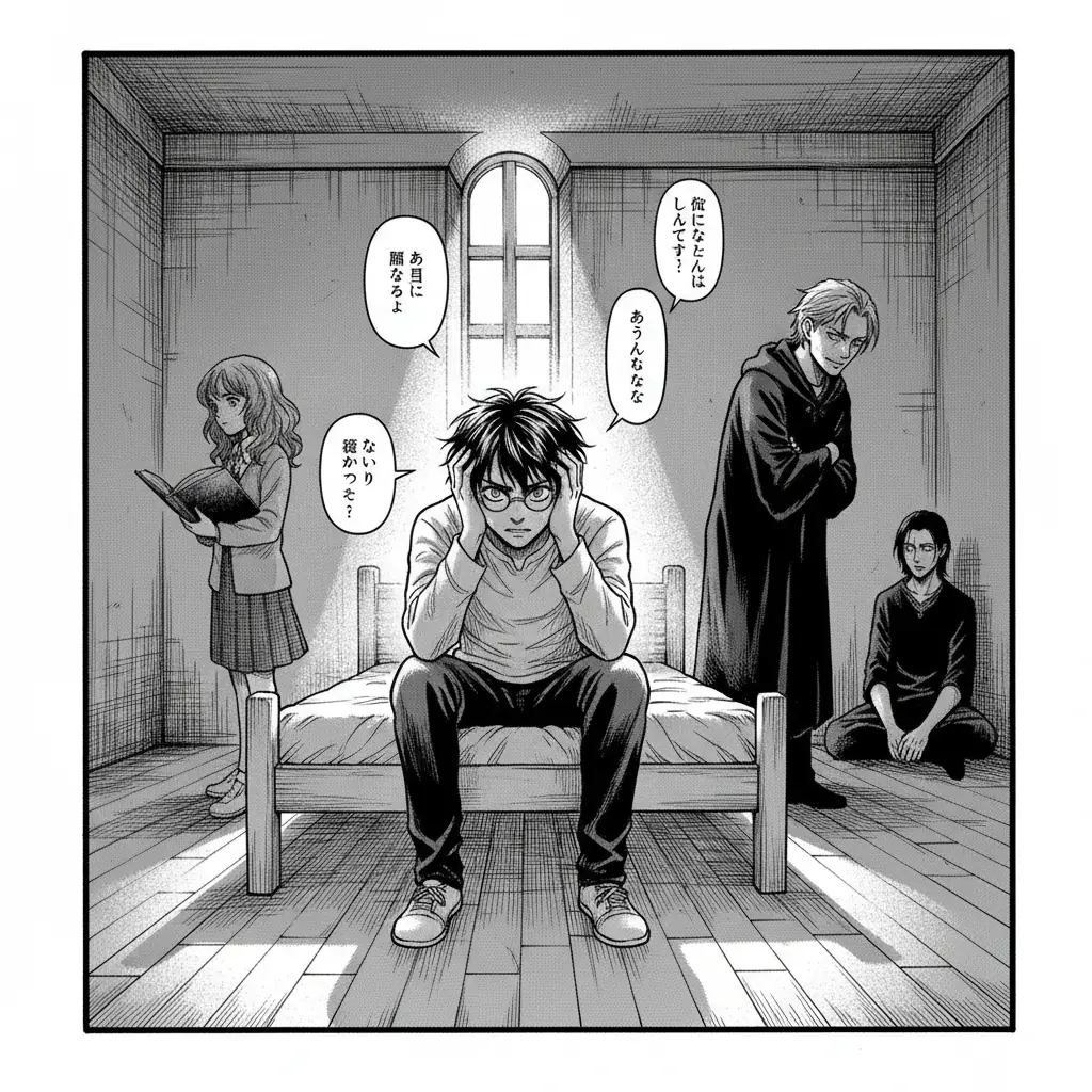 Свет Люмоса на конце твоей палочки едва разгонял мрак Запретной секции. Ты тянулась к пыльному фолианту на верхней полке, когда чья-то холодная рука внезапно перехватила твое запястье, опуская палочку вниз. Свет погас.